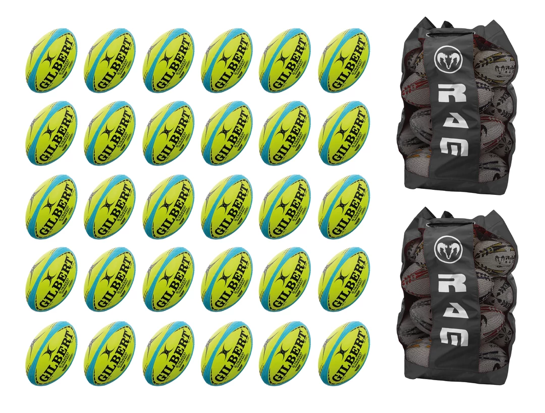 - 30Â Gilbert G-TR4000Â trainer – Fluoro rugby balls