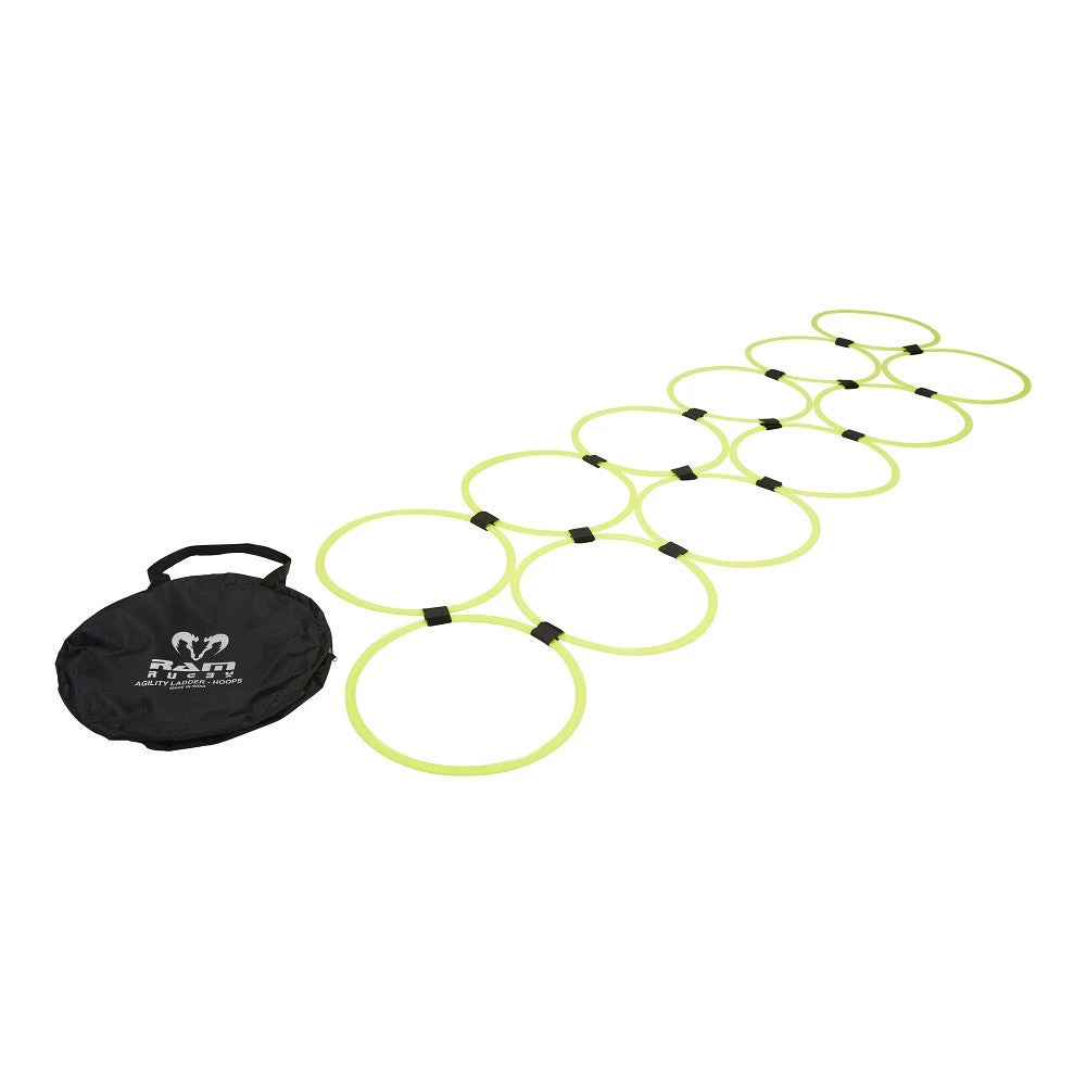 Used extensively in foot speed and agility training sessions, the hoop ladder is a staple in the rugby coaches arsenal of equipment.