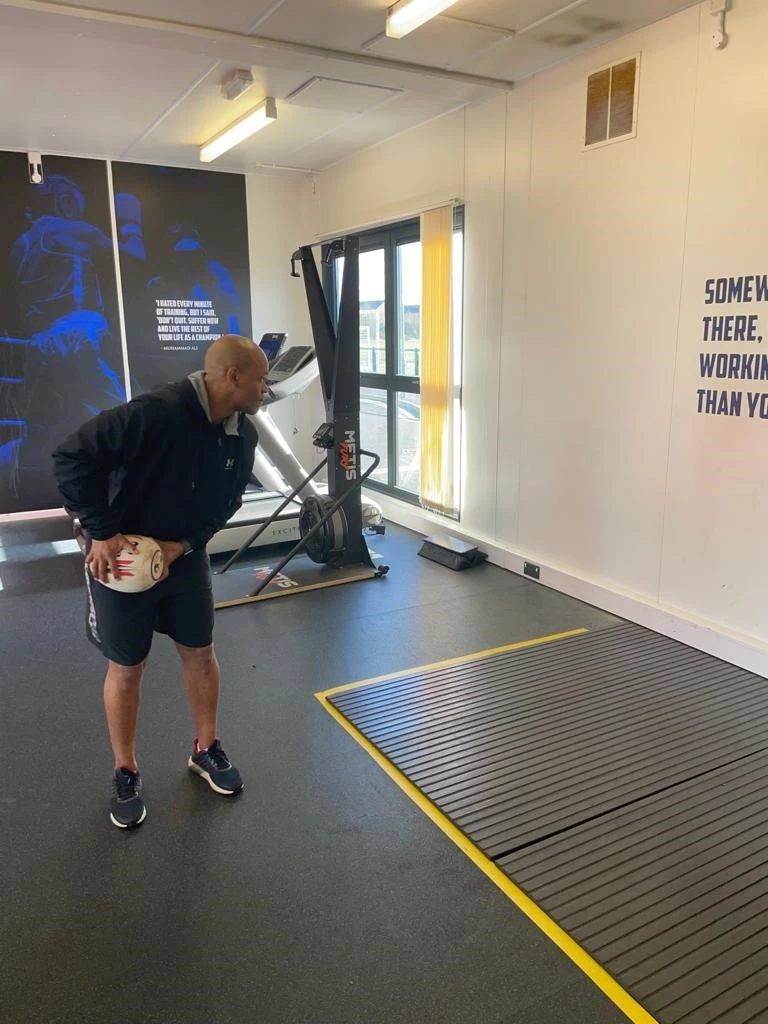 One end is flat and the other a conventional rugby ball shape. The ball has been specifically developed to bounce back, spin and return to the player when the flat edge is thrown or passed against a wall.